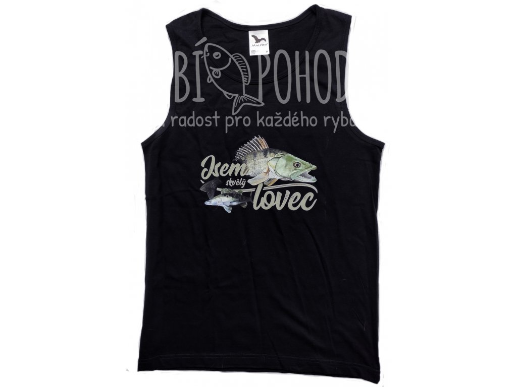 Pánský nátělník je vyroben ze 100% bavlny v černé barvě. Nátělník bez rukávů je v oblasti prsou opatřen grafickým potiskem dvou candátů a heslem "Jsem skvělý lovec". Zadní strana je bez potisku. Bavlněný nátělník má rovný střih a při nošení je příjemně lehký a prodyšný. Jeho využití je velice pestré. Pro horké letní dny nejen u vody je jistě skvělým řešením. Tmavá barva pánského nátělníku zaručuje, že při jeho používání nebude tak moc náchylný k zašpinění. Technologie tisku zajišťuje stálé zachování motivu. Při praní nedochází k "odlupování" grafiky či její deformaci.